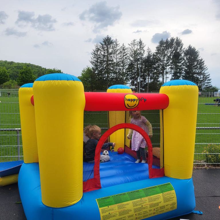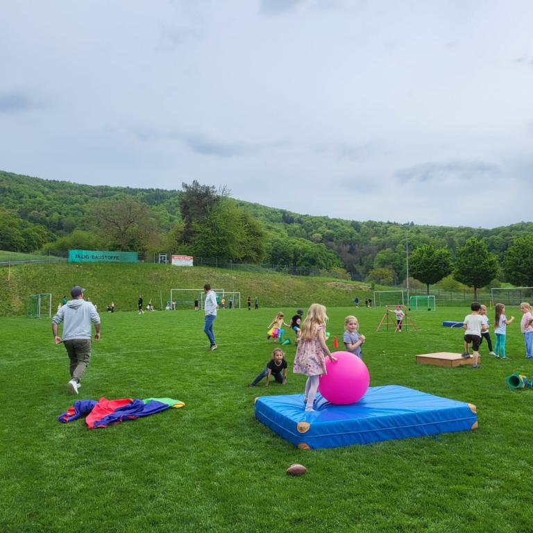 Bei schönem Frühjahrswetter sind viele Kinder mit ihren Eltern und Großeltern der Einladung gefolgt und auf den Sportplatz gekommen. Die Kinder haben sich sogleich an den vielen Stationen ausprobiert und mit viel Freude und Spaß den Parcours bewältigt. Auch die Hüpfburg fand bei den Kleinsten regen Zuspruch. Die Dorfkinder haben mit einer sportlichen Tanzeinlage ihr Können gezeigt. Bei einer Tombola wurden viele Spiel- und kreative Artikel verlost. Die Eltern, Kinder und Besucher wurden mit selbst gebackenen Kuchen, Muffins, sowie einer Obst- und Rohkostauswahl versorgt.